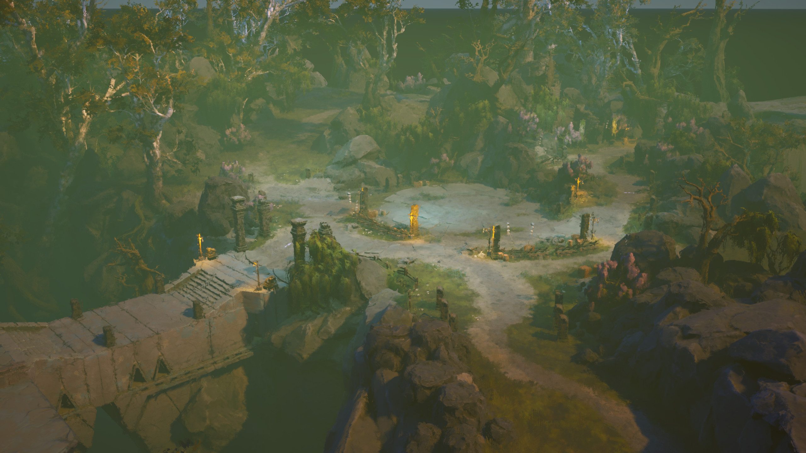 Example of the "Populate" HDA that is used after generating terrain to randomly scatter and instance cliffs, trees, grass, and debris.