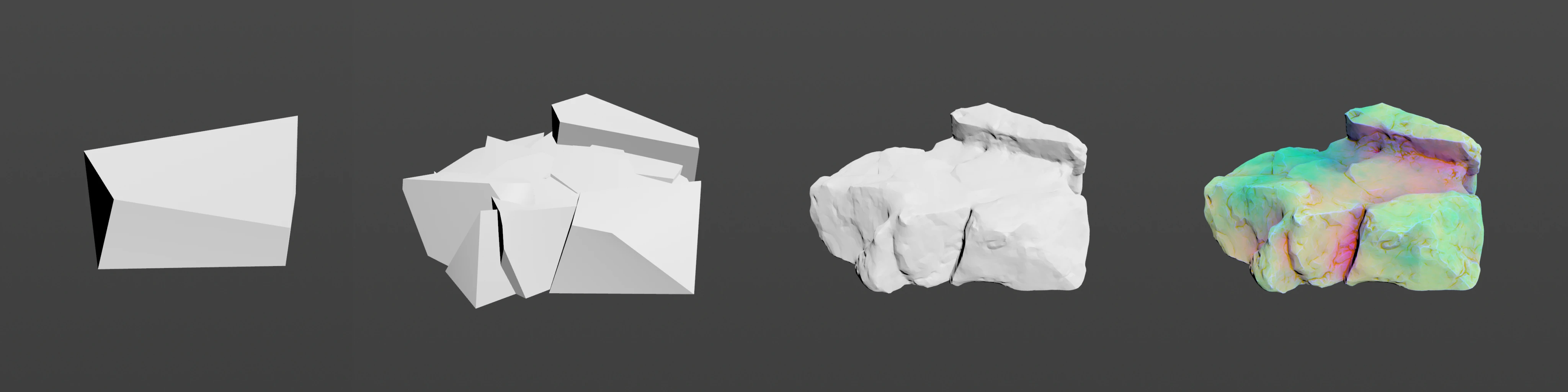 Breakdown of the overall processing steps to procedurally generate each mesh